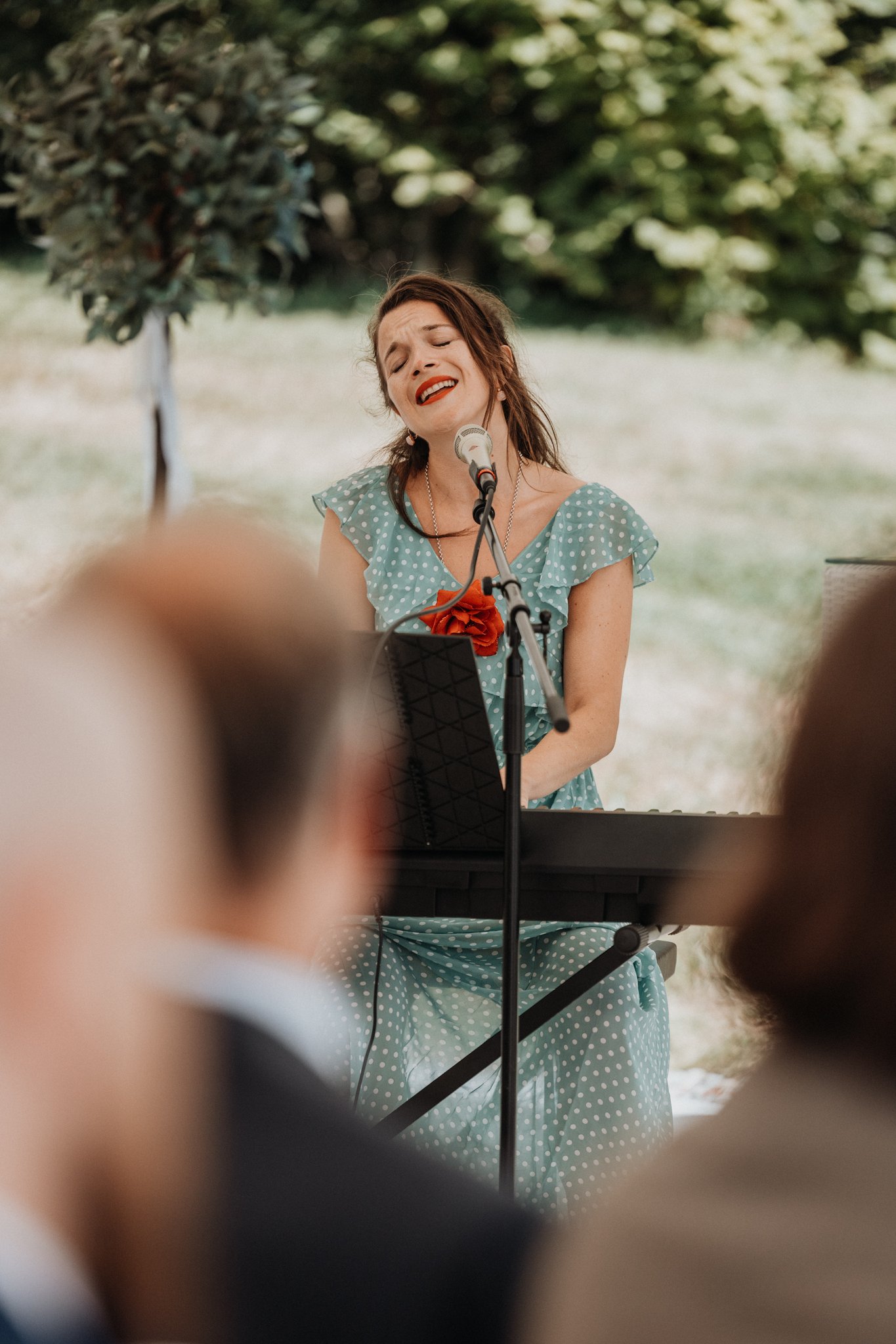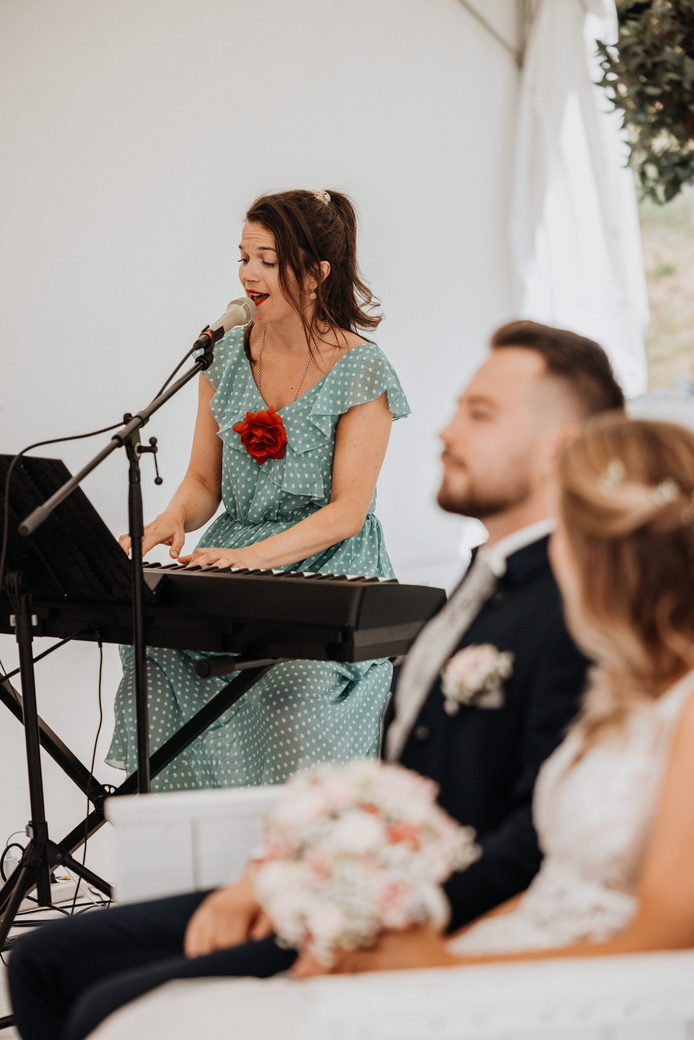 - während der Hochzeitszeremonie singe ich und begleite mich am Klavier oder mit der Ukulele